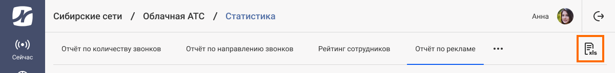 Вы можете экспортировать отчет по каждой рекламной кампании в формате xlsx. Экспорт в xlsx позволит провести более глубокий сравнительный анализ данных, используя собственные инструменты для аналитики. Комбинируйте отчет по рекламе с другими данными. Например, добавив столбец с расходами на рекламу, вы можете посчитать стоимость уникального звонка на рекламный номер. Чтобы скачать отчет в формате xlsx, кликните на иконку с подписью xls в правом верхнем углу экрана.